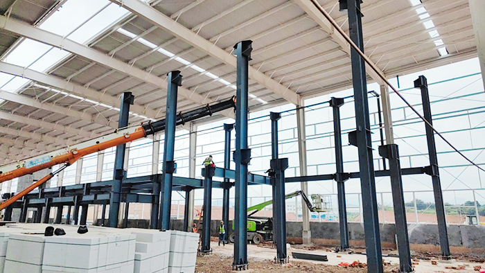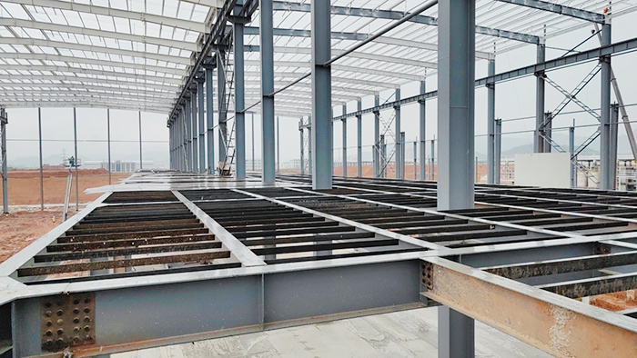 3、钢架:钢架有单层和多层,钢架杆件有实腹式和格构式的,多层钢架能有效地利用建筑空间,降低房屋的高度,造型简洁美观,构件规格整齐,工地安装方便,施工速度快,是当前轻型结构主要结构形式,多采用H型钢制造。