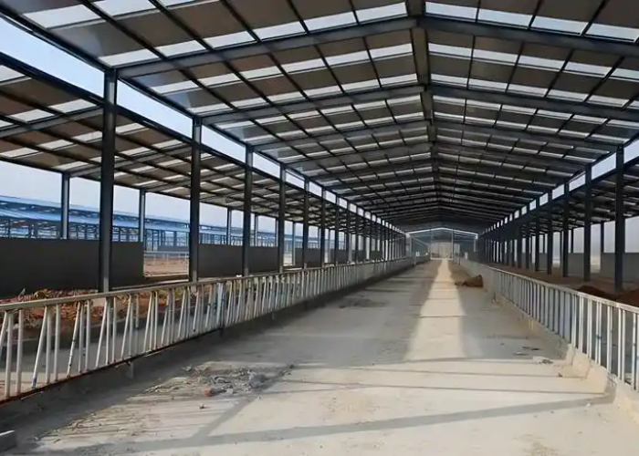 Portal steel structures mainly include two types: light-steel portal frame structures and heavy-steel portal frame structures. The structure is mainly subject to plane stress, and the overall structure forms a stable system by setting column bracings, horizontal bracings, rigid tie rods, etc. According to the different lifting capacities of cranes, solid-web columns (for light-steel portal frames) and truss-type steel columns (for heavy-steel portal frames) can be used. This type of structure has simple force bearing and clear force transmission path, which can give full play to the mechanical properties of steel.